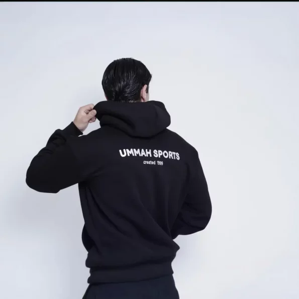 Ummah Sports ist ein Ort, wo Sport und Gemeinschaft zusammenkommen. Der Hoodie von Ummah Sports ist nicht nur ein Kleidungsstück, sondern ein Statement. Der Tauhid-Finger symbolisiert die Einheit Gottes.